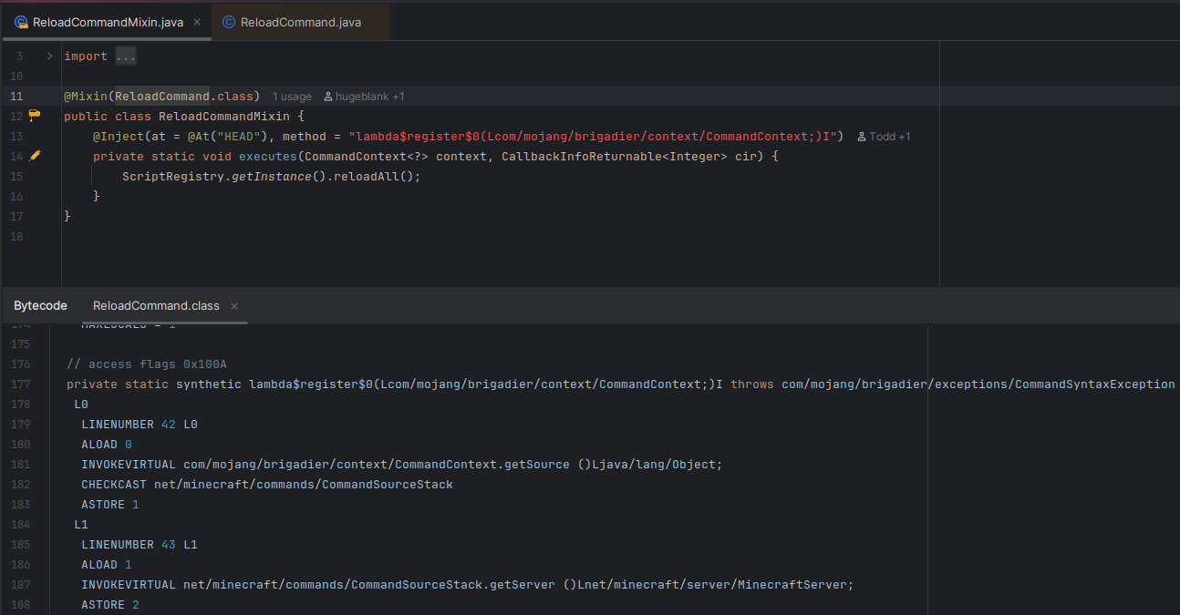 The following is a mixin and snippet of bytecode from Minecraft version 26.1-snapshot-1: